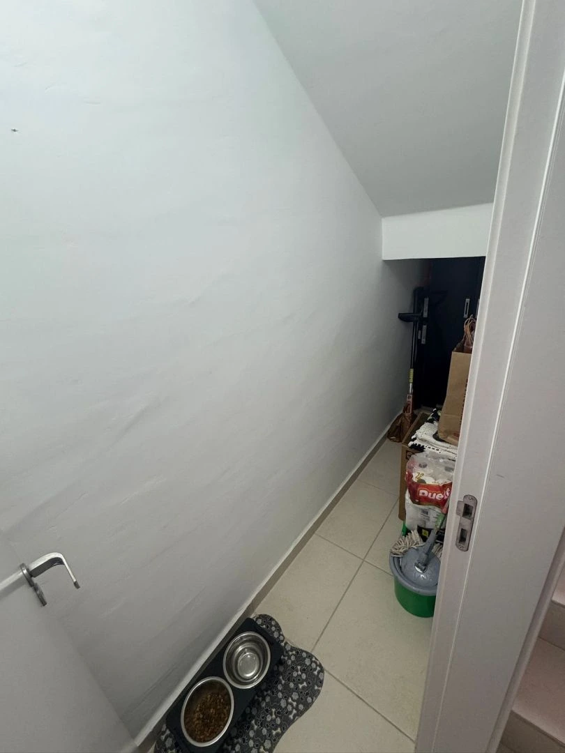 • Espaço sob a escada funcional, ideal para organização.