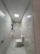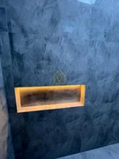 Cada ambiente foi desenhado para proporcionar conforto e modernidade. Os banheiros das suítes trazem revestimentos sofisticados, a iluminação indireta valoriza os tetos em gesso, e as grandes esquadrias garantem elegância e funcionalidade.